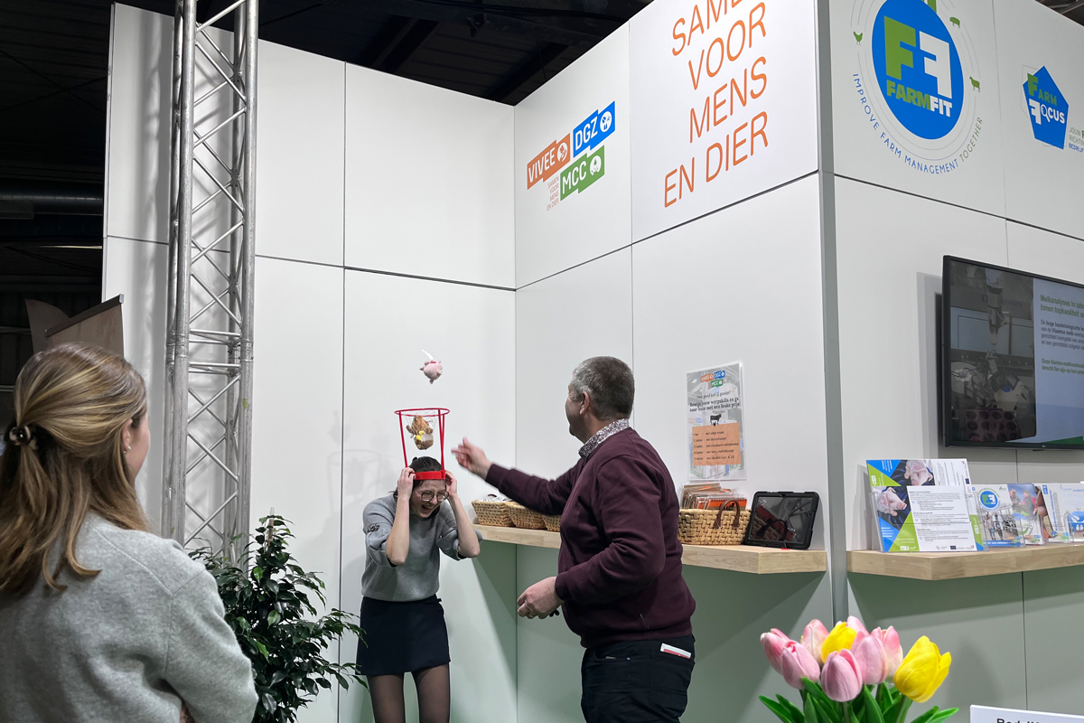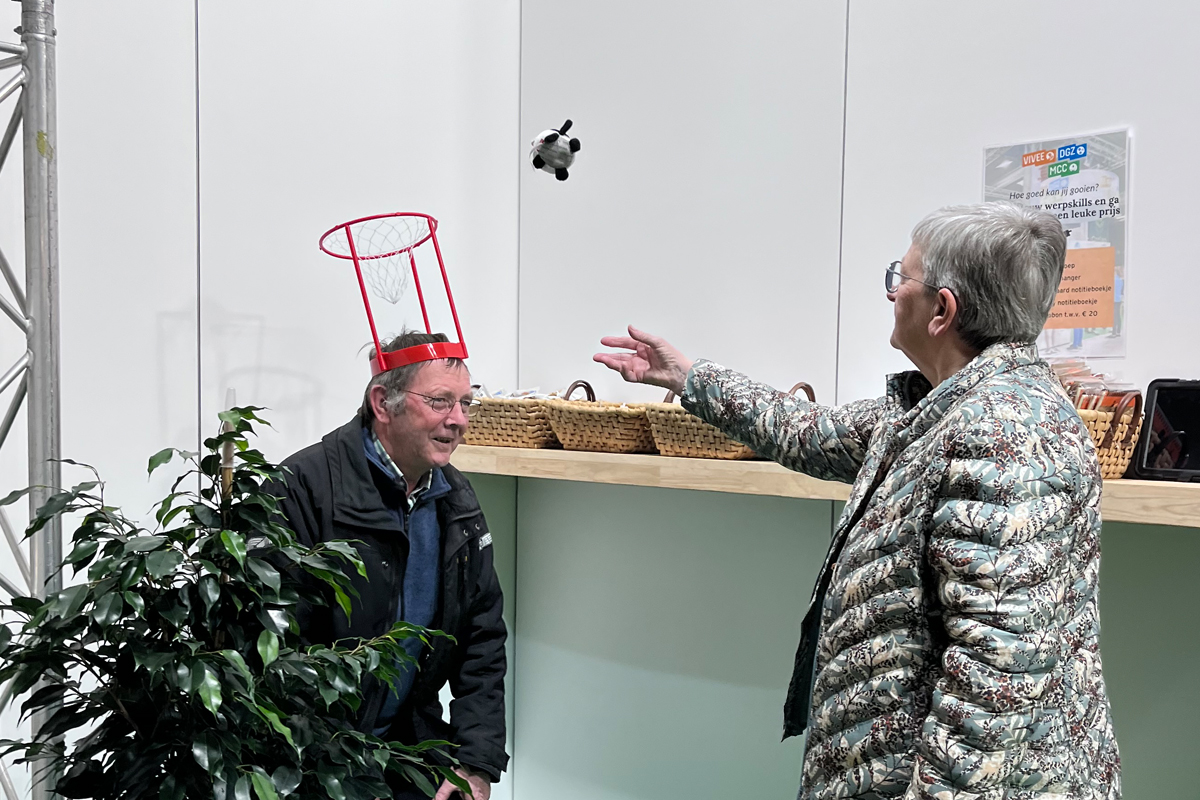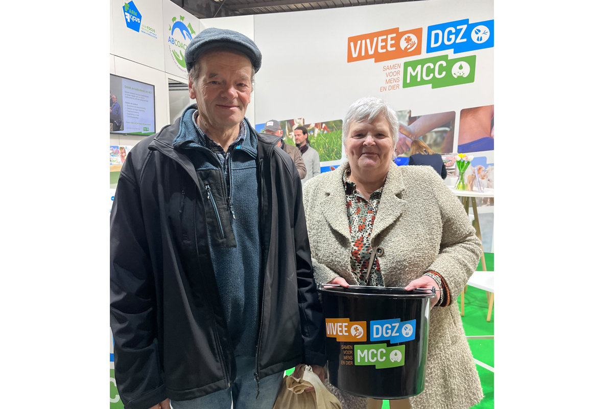 Daarom kozen we er dit jaar bewust voor om bioveiligheid centraal te zetten op onze stand. Onze unieke DGZ-MCC-VIVEE-emmer bleek een echte blikvanger. Heel wat bezoekers namen enthousiast deel aan de zoek-de-5-bioveiligheidsverschillen-wedstrijd via onze advertenties in Boer & Tuinder, Drietand en Landbouwleven en kwamen hun ingevulde bon inruilen voor een exclusieve emmer.